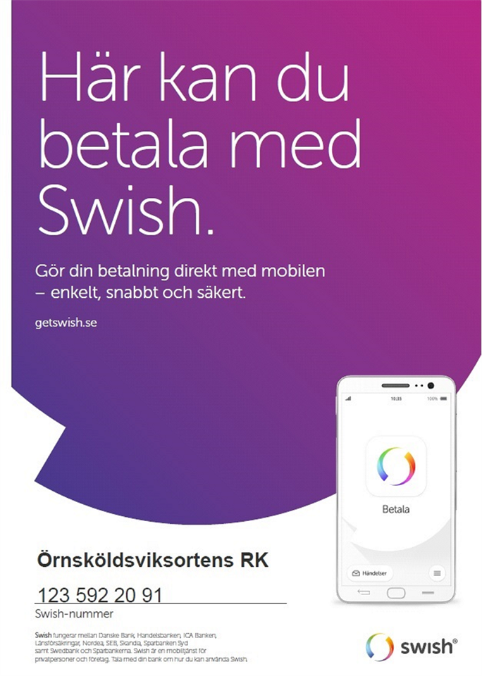 Glöm inte att skriva i meddelandet vad ni swishar för. Många skriver i meddelandet att de betalar för t.ex. cafeterian eller kakor. Men ganska många gör det inte och nu när vi har försäljning av både kakor och Bingolotter så är det inte lätt att veta vad betalningen gäller. Tack för att ni förstår! Örnsköldsviksortens Ryttarklubb 18 nov 2019 0kommentarer