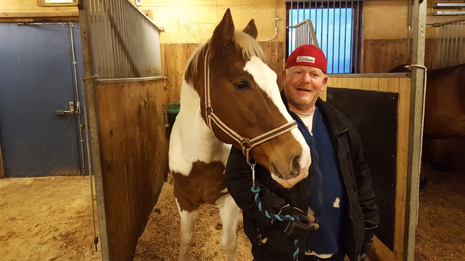 Jag är en stilig, cool och snäll kille på 10 år. Jag är av rasen American Paint horse. Jag ska ta över jobbet som ridskolehäst efter Florien. Hon hälsar så mycket åt er alla. Hon blev ompysslad av en snart femårig kille, som heter Willian, när jag åkte igår. Hon hälsar att hon trivs bra. Jag ska skolas in lite lugnt, så tänka på att jag behöver lugn och ro, nu i början. Gnägg //Macqs Rainbow Legend
