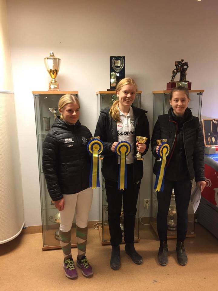 Nu är det dags för Ridskolemästerskapet 2016. Alla lagen samlas i cafeterian 10.30. (Våra tjejer och ledare träffas 10.00 och tar fram dressyrstaketet) Uppstallning för hästar utifrån i Lilla Stallet. Presentation av hästar och lagdeltagare i Cafeterian och sedan går vi ut och värmer upp inför dressyren! Första start ca 11.30. När alla ridit, tar vi bort staketet och bygger fram hoppbanan. Därefter lunch i cafeterian. Dagens finns att köpa för 70:- Efter att alla är mätta och belåtna går vi ut och kör igång med hopptävlingen. När den är avslutad, bärs hindren bort och det är dags för teoriprovet. Sammanställning av resultaten och prisutdelning. Vi vill att så många som möjligt kommer hit och tittar. Heja fram vårt lag! :D Har ni som kommer hit och tävlar frågor, kan ni ringa Camilla 070-3505357 Startlista Ridskolemästerskapet 20161016 Dressyr klass 1 Dressyrryttartest I:2 1. Ebba Umegård Sparkling Pepsi 2. Meja Sörlin Willie 3. Sandra Wallmark Urban Cowboy 4. Alva Johansson Isaris Hot Key Hoppning klass 2 LD-10 Bed. A Inverkan 1. Jonna Jonsson Mitrix 2. Johanna Röhlander Urban Cowboy 3. Tilde Kronman Lady 4. Ebba Hellström Preston Därefter teoriprov och sammanställning av poäng! Lycka till! Välkomna!