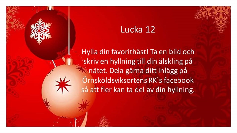 Var med och sprid kärlek och värme med ÖOR's adventskalender. Vi är bäst tillsammans! Örnsköldsviksortens Ryttarklubb 10 dec 2022 0kommentarer