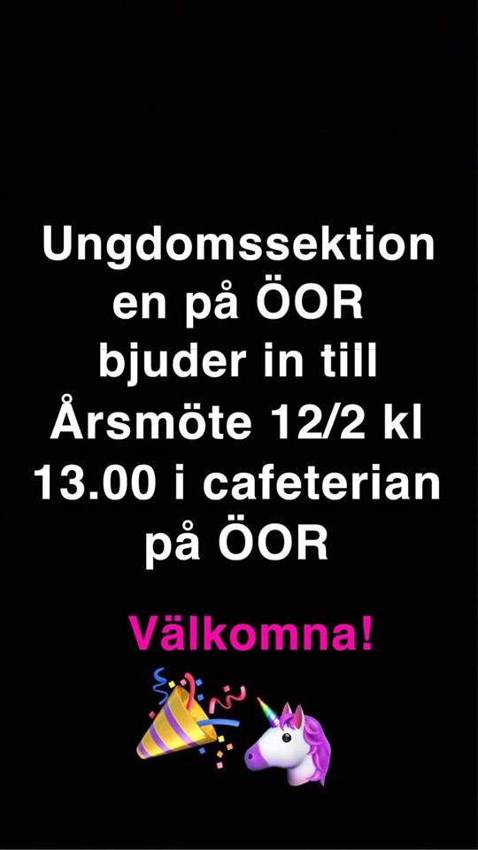 Ungdomssektionen bjuder in till årsmöte i cafeterian den 12/2 kl 13.00. Alla ÖOR-medlemmar som är upp till 26 år är välkomna!