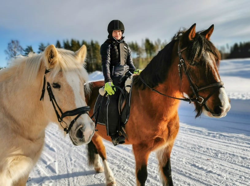 Hej! Här kommer en liten hälsning från Alfons nya liv 😊 Han går på lösdrift med ligghall, tillsammans med nya kompisen bruksnordisen Kung Midas. Nån natt i veckan, eller vid väldigt dåligt/kallt väder så sover dom i stallet. Här finns även kompisar i form av får och kalvar, som Alfons accepterade väldigt snabbt. Thea älskar honom över allt annat, och dom trivs så otroligt bra ihop 💞. Det blir uteritter i skogen för hela slanten, och Alfons verkar trivas med livet. Och vi är så otroligt tacksamma för att vi fick möjlighet att ta över denna underbara kille, för han är verkligen en pärla ❤️ / Mvh Jessica & Thea