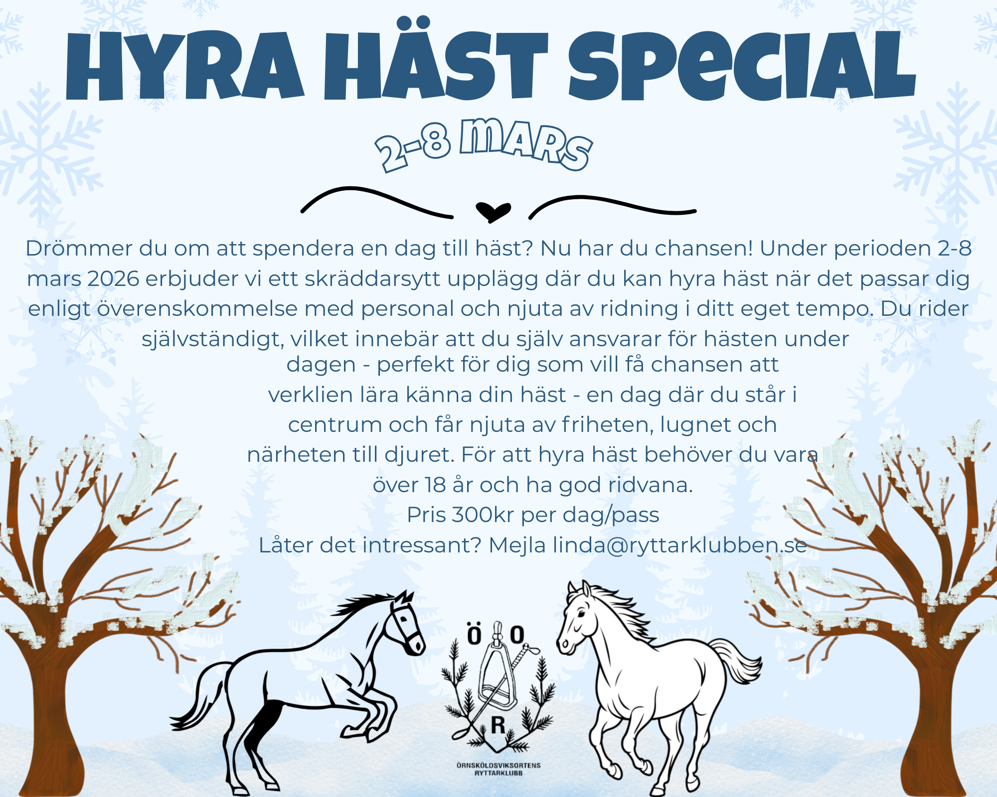 Hör av dig till kansliet@ryttarklubben.se om du har funderingar